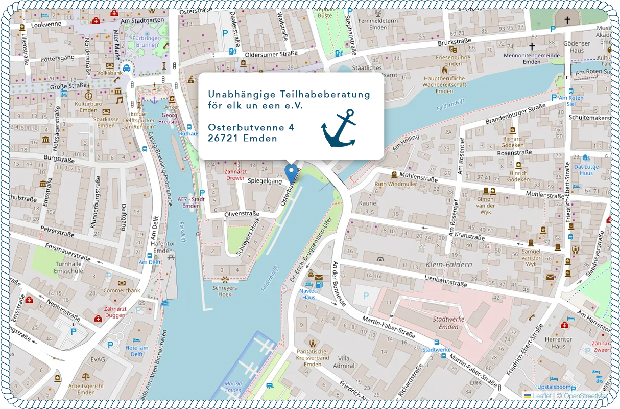 Zusätzlich haben wir einen Lageplan abgebildet, der Ihnen zeigt, wo sich unser Büro in Emden befindet.